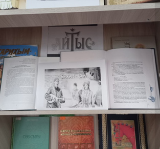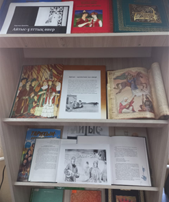 В школьной библиотеке была организована выставка «Национальное искусство Айтыса». Айтыс - древний поэтический жанр в устной литературе, речевой конкурс, поэтический конкурс, интервью с детьми о видах айтысов.