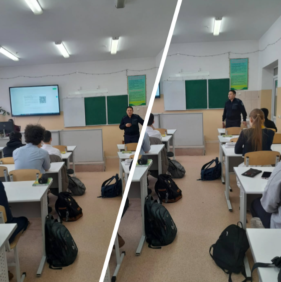 В рамках профилактических мероприятий «Подросток и закон» участковым инспектором полиции ОЮП УП Турксибского района, старшим лейтенантом полиции Акишевым Аяном Уахитулы проведена беседа с учащимися 9–10 классов