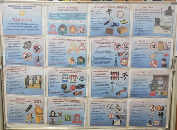 No71 ШЛ КММ-де лаңкестік актісін жасау немесе қауіп төнген кездегі мінез-құлық ережелеріне арналған ақпараттық стенд жаңартылды.