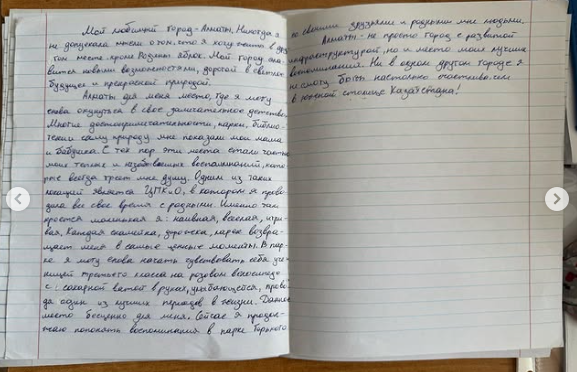 В рамках мероприятий «Алматы – ортақ үйіміз» и «Таза Қазақстан» прошёл конкурс эссе на тему «Мой любимый город». Участники поделились своими историями, мыслями и чувствами к Алматы, рассказали, за что любят этот город и как хотят его видеть в будущем.