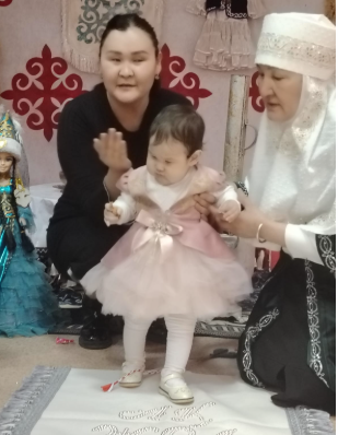 👣 Тұсау кесу – перерезание пут младенцу, делающий первые шаги, с пожеланиями лёгкого пути в жизни.
