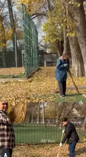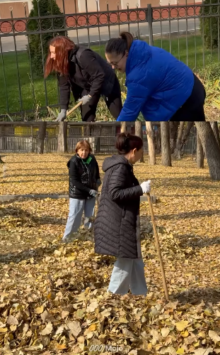 Ұстаздар көтеріңкі көңіл күймен мектеп аумағын тазалап, тәртіп орнатуға және оқу ордамыздың тазалығы мен жайлылығына өз үлестерін қосты. 🏫✨