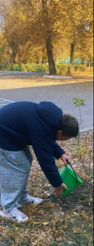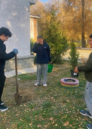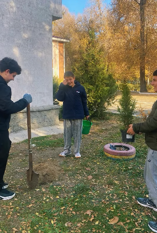 Во время осенних каникул ученики 9 класса провели экологическую акцию — посадили деревья на территории школы.