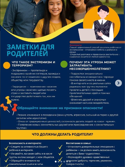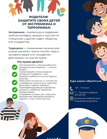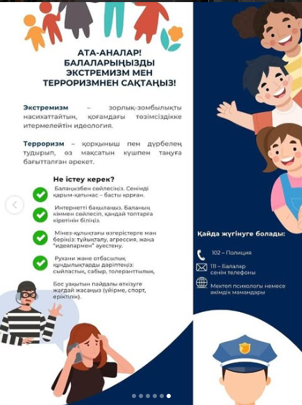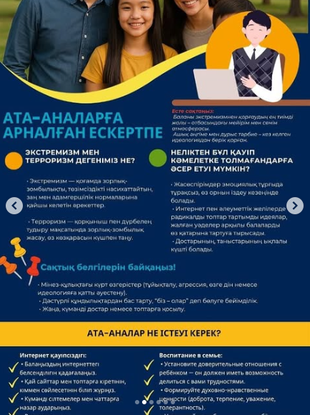 21 қараша 2025 0 1 2 3 4 5 Терроризм мен экстремизмнің алдын алу бойынша ата-аналарға арналған жадынама Памятка для родителей по профилактике терроризма и экстремизма