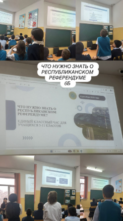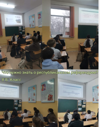 Мероприятие было направлено на повышение правовой грамотности учащихся, формирование гражданской позиции и ознакомление с ключевыми положениями Республиканского референдума. В ходе классного часа обучающиеся получили информацию о значении референдума в системе государственного управления, его целях и порядке проведения.
