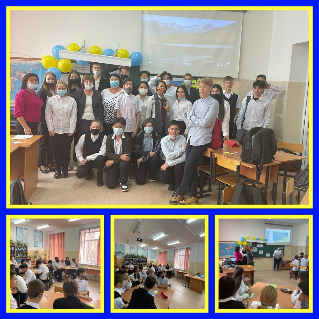 Руководителем классного часа выступил учитель казахского языка и литературы Мусабекова Лаура Курбанова.