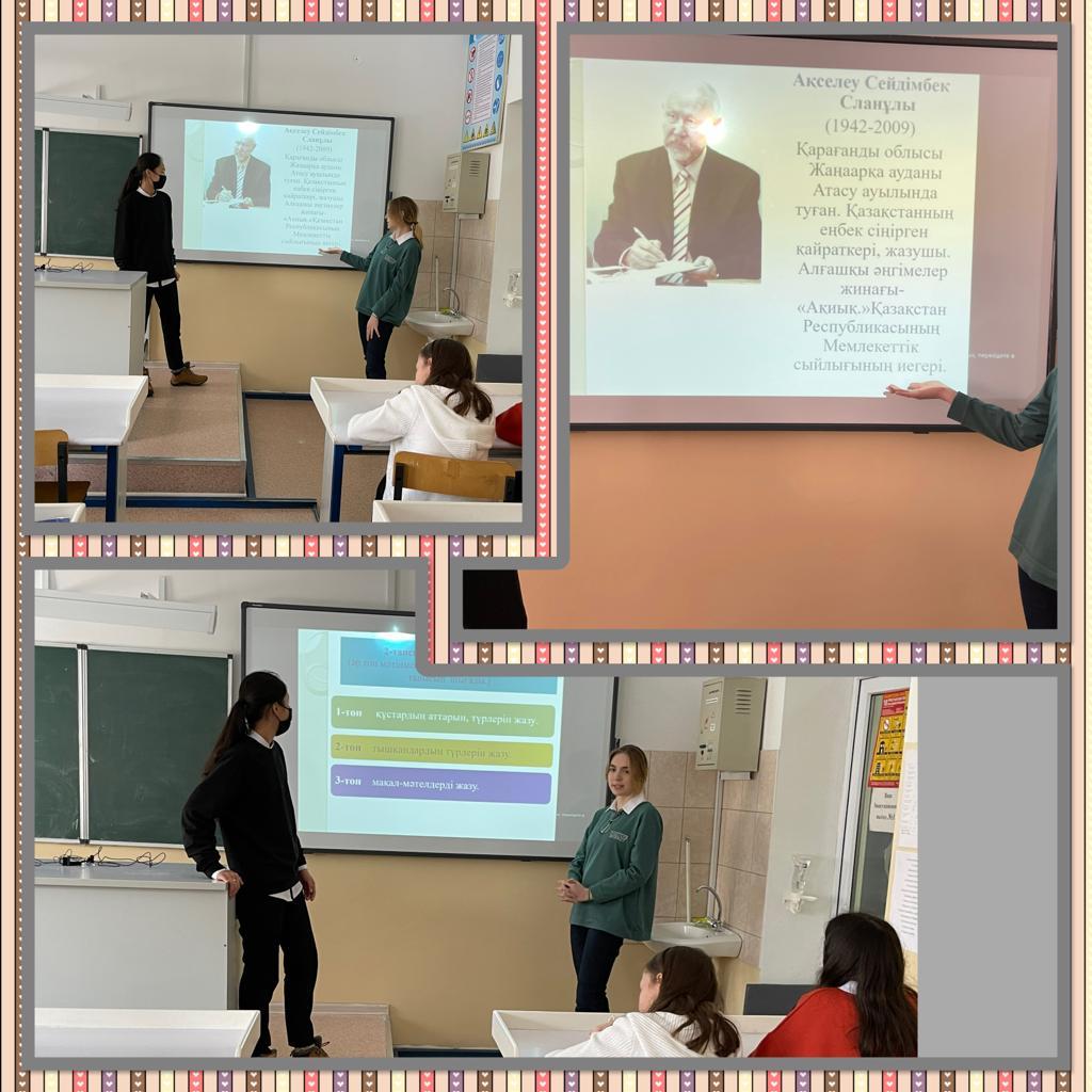 28.01.2022 года в КГУ ШЛ №71 членами школьного самоуправления был проведён информационный урок, в честь выдающего этнолога Казахстана Акселеу Сейдимбека.