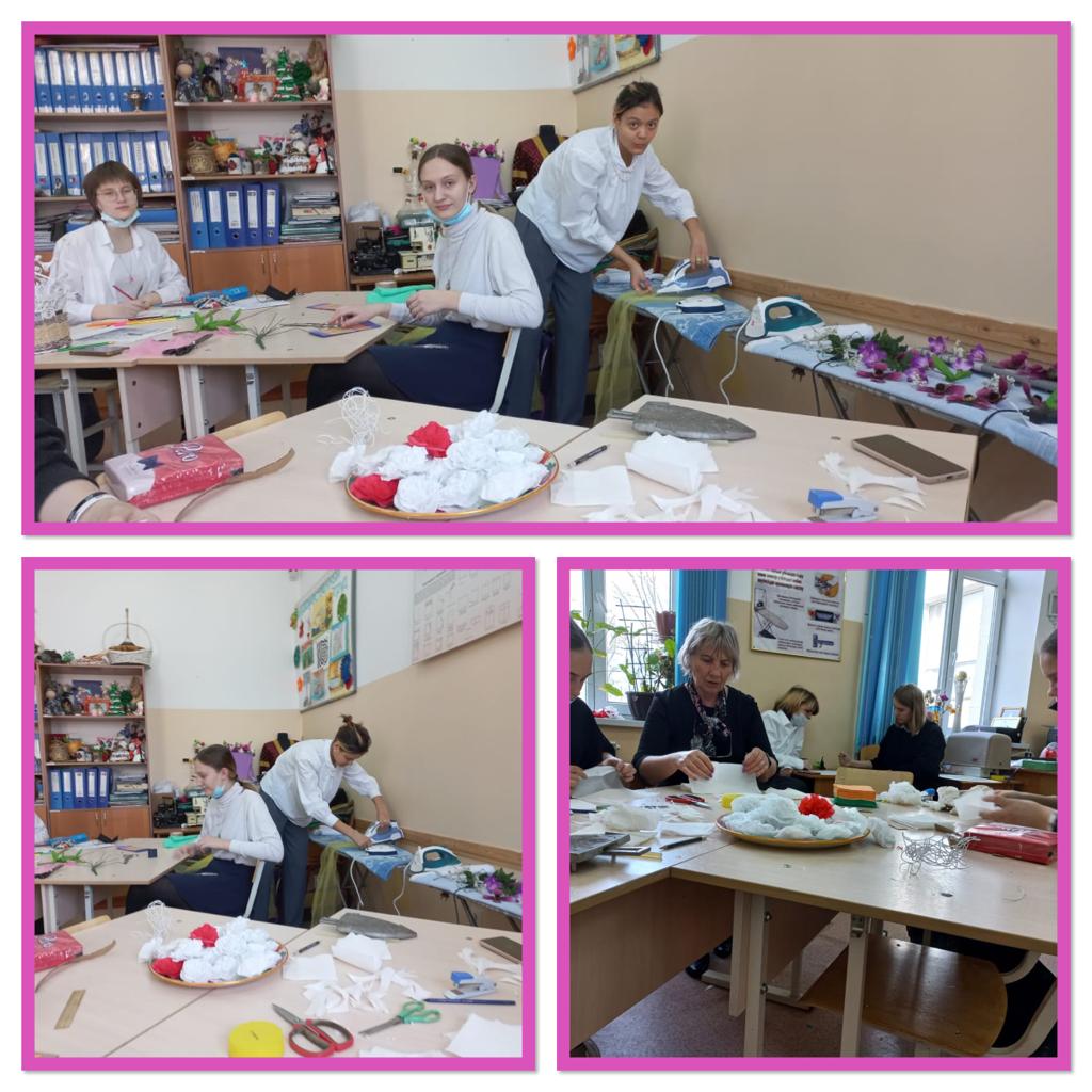 В предверии праздников в КГУ ШЛ71 творческая занятость учащихся. Подготовка к оформлению актового зала для проведения общешкольного мероприятия