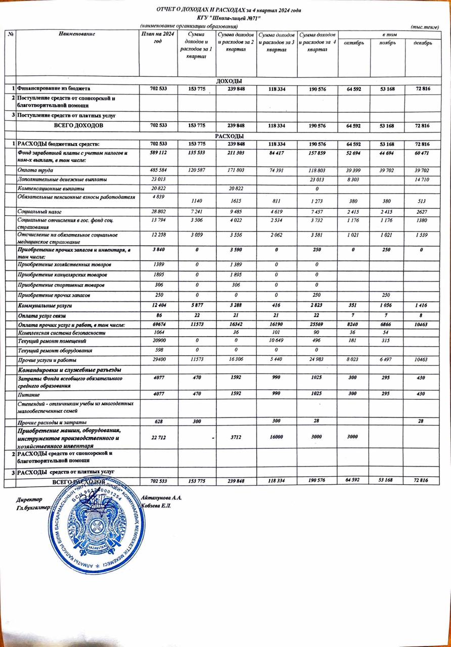 30 желтоқсан 2024 0 1 2 3 4 5 2024ж. 4 кв. кіріс жөне шыгыс есебі /Отчет о доходах и расходах за 4 квартал 2024 года