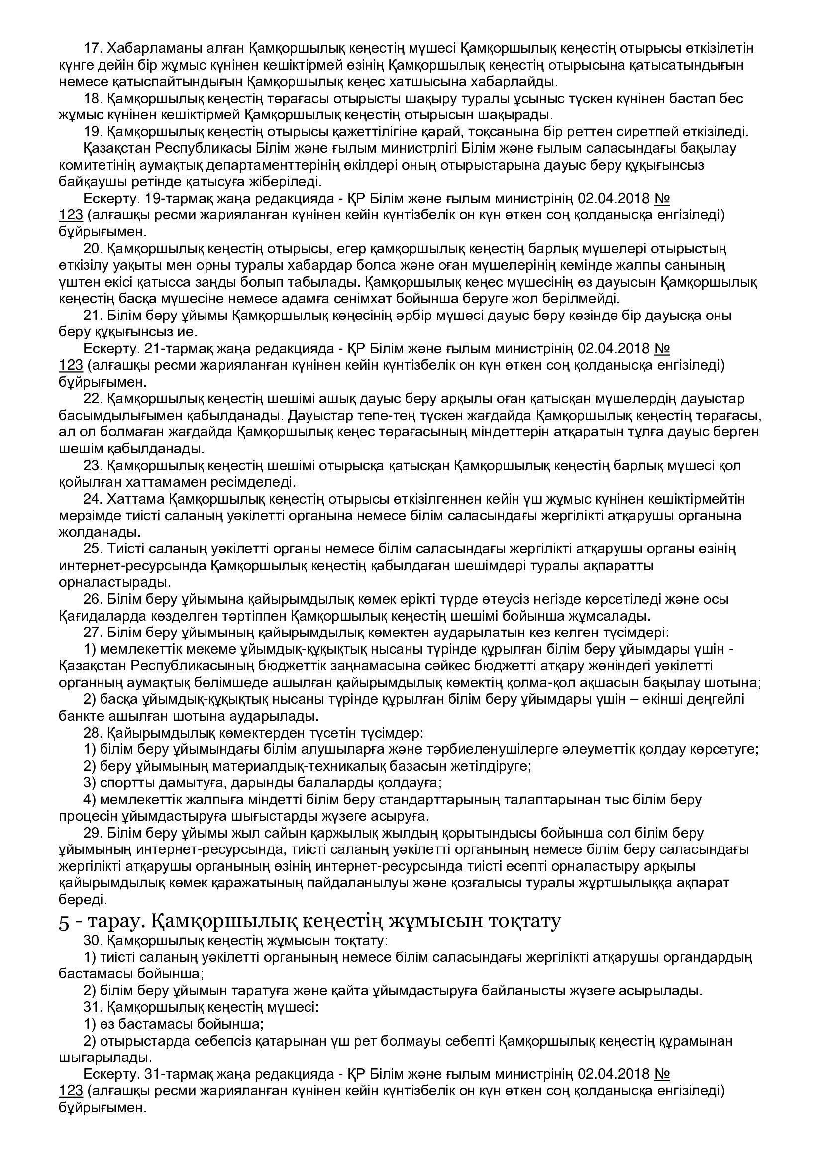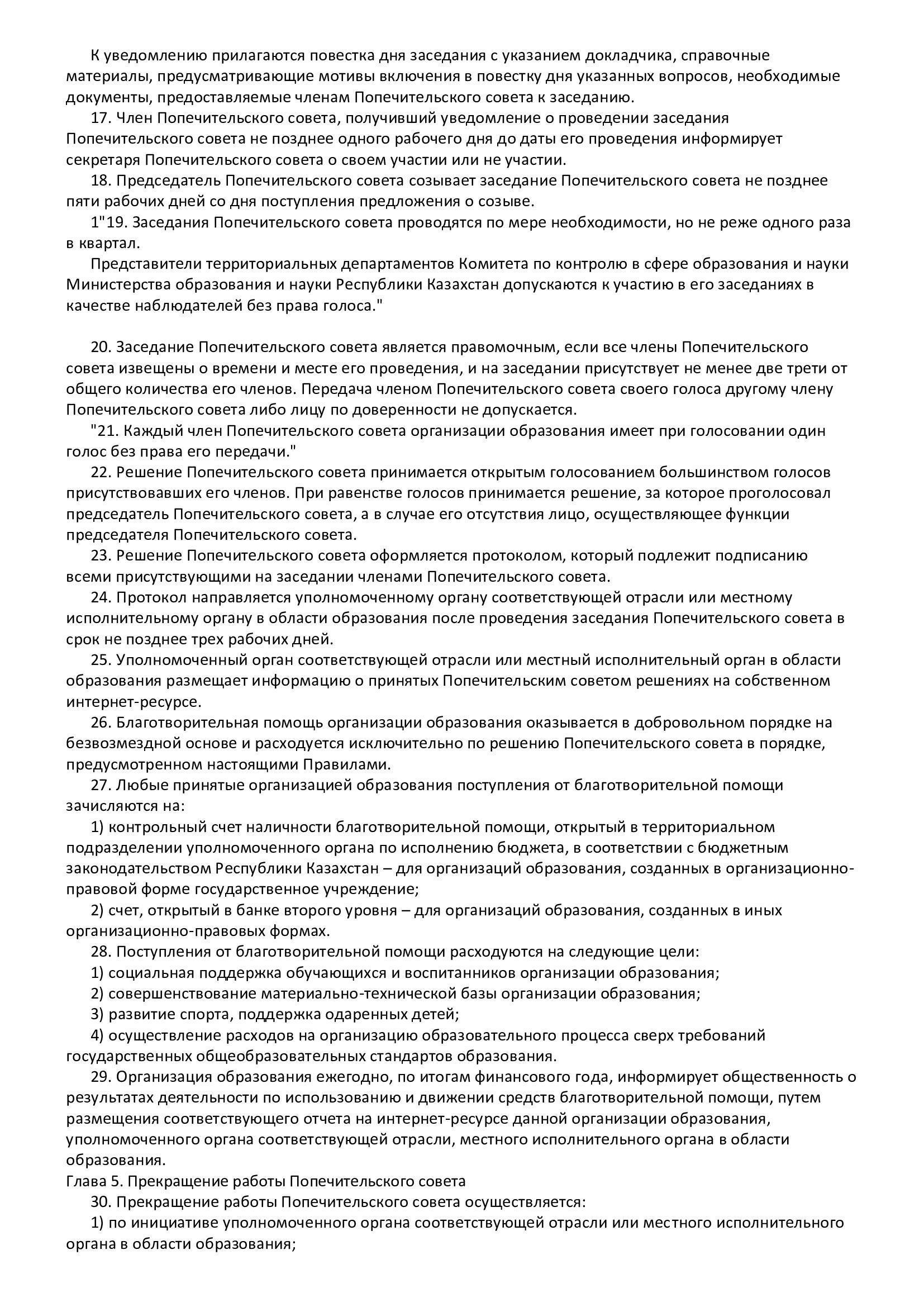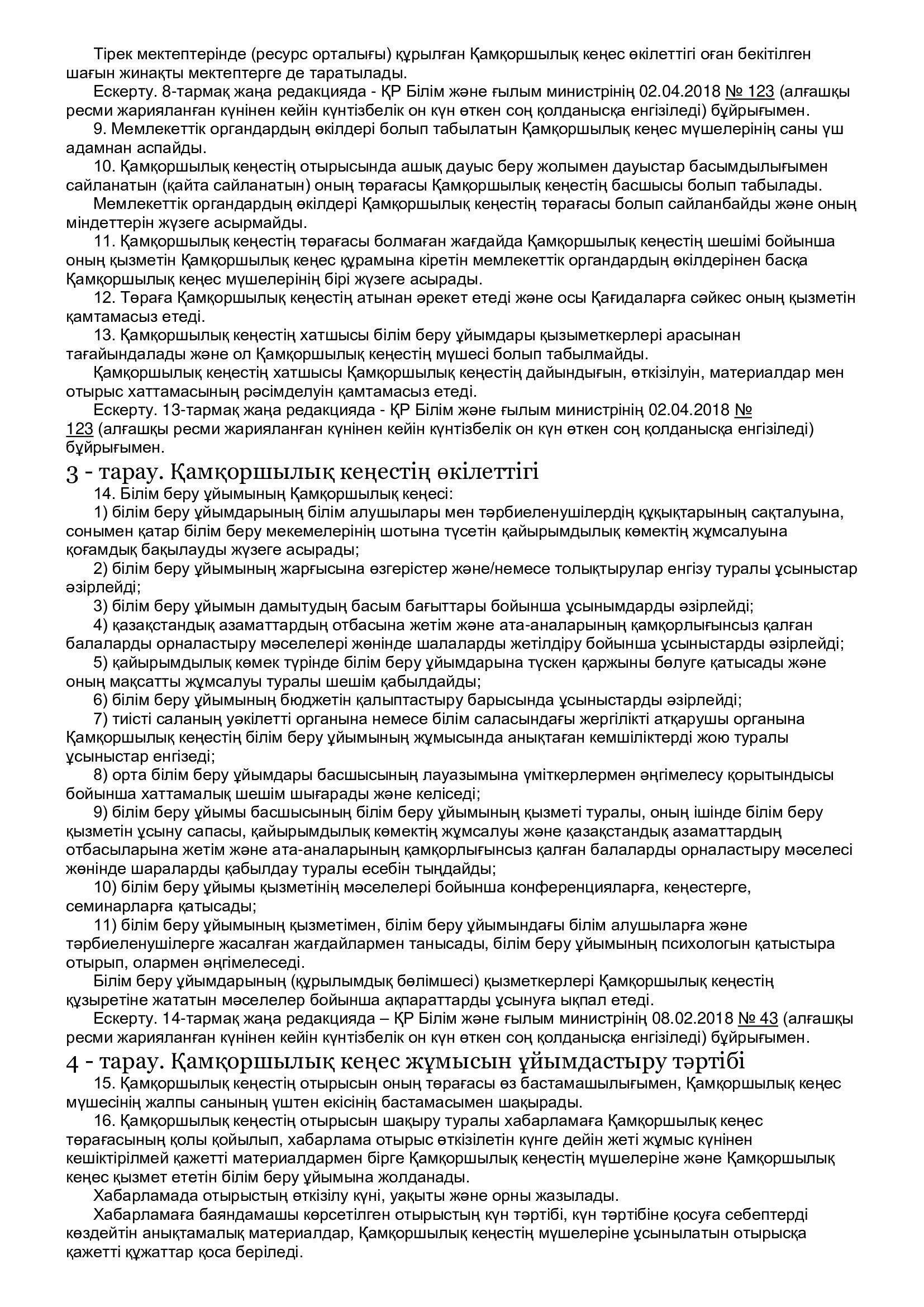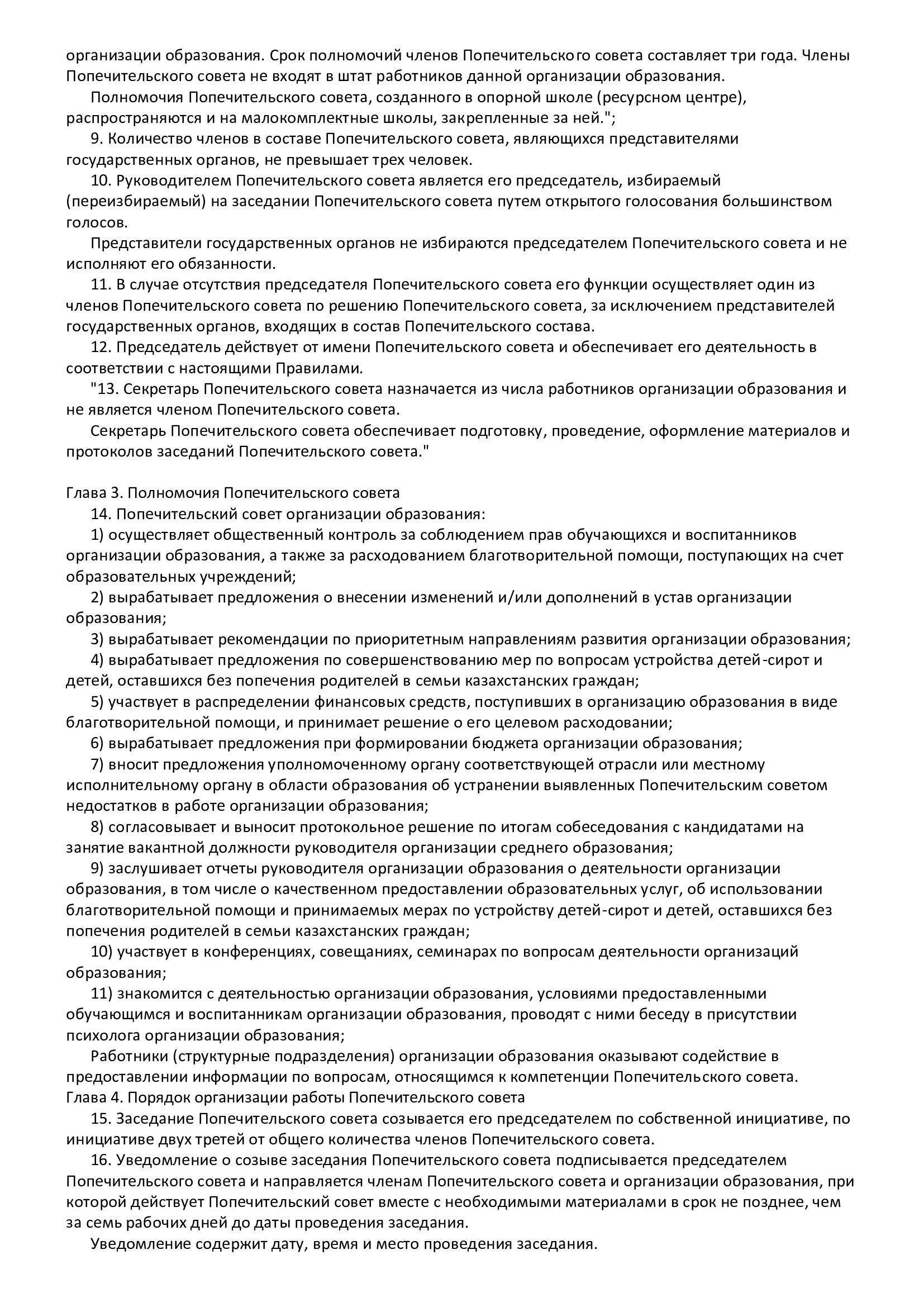 Кеңестің жұмысын ұйымдастыру және оны сайлау тәртібінің үлгілік қағидалары/Типовые правила организации работы Попечительского совета
