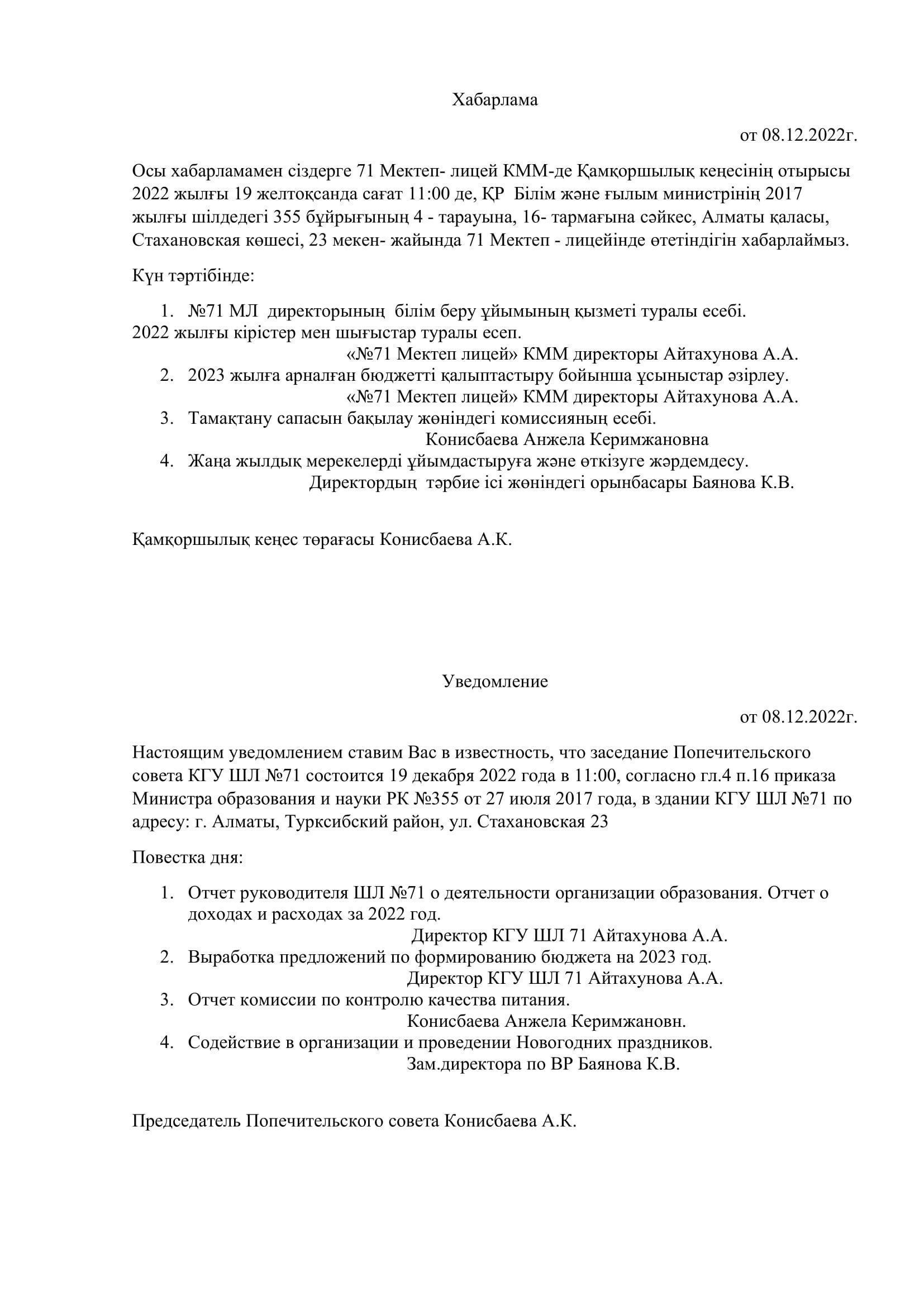 Хабарлама/Уведомление