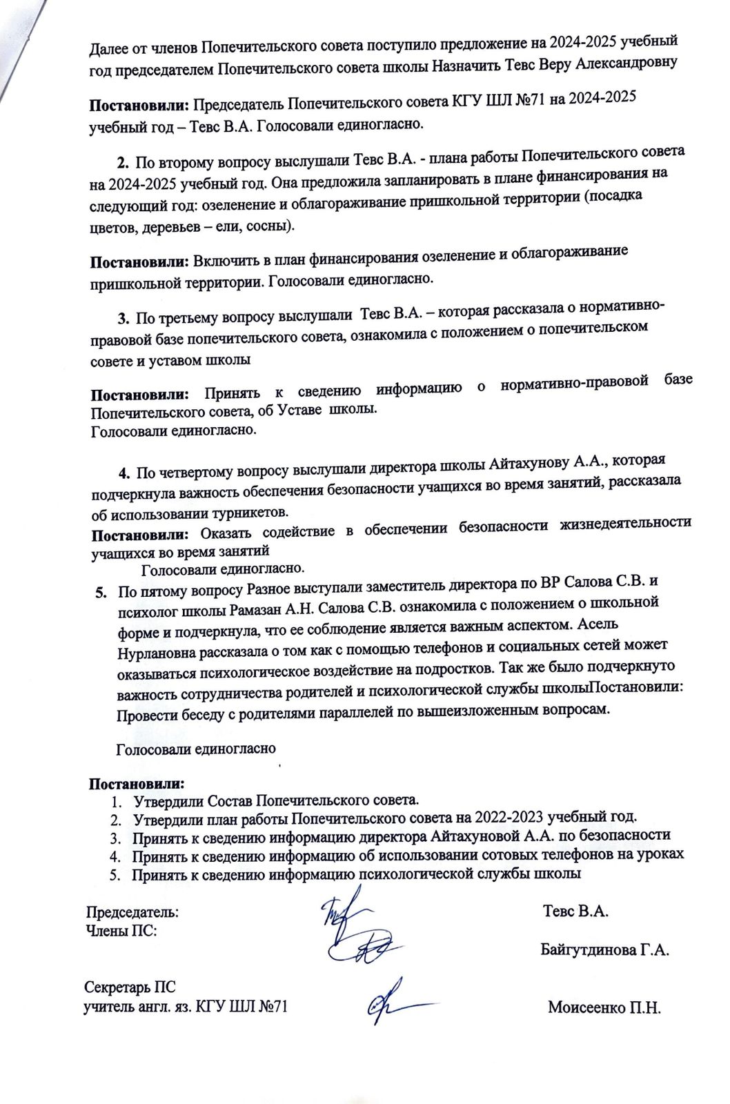 24 қыркүйек 2024 0 1 2 3 4 5 Қамқоршылық кеңес отырысының 1 хаттамасы/Протокол №1 заседания Попечительского совета