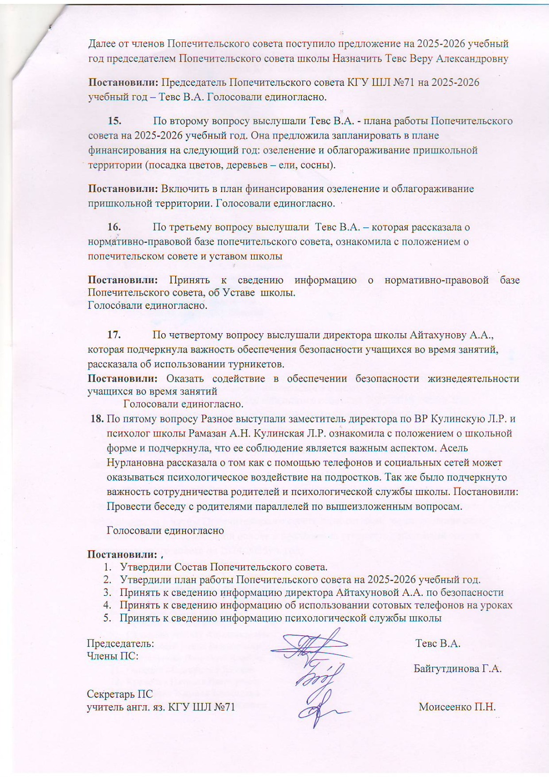 02 қыркүйек 2025 0 1 2 3 4 5 Қамқоршылық кеңес отырысының 1 хаттамасы/Протокол №1 заседания Попечительского совета
