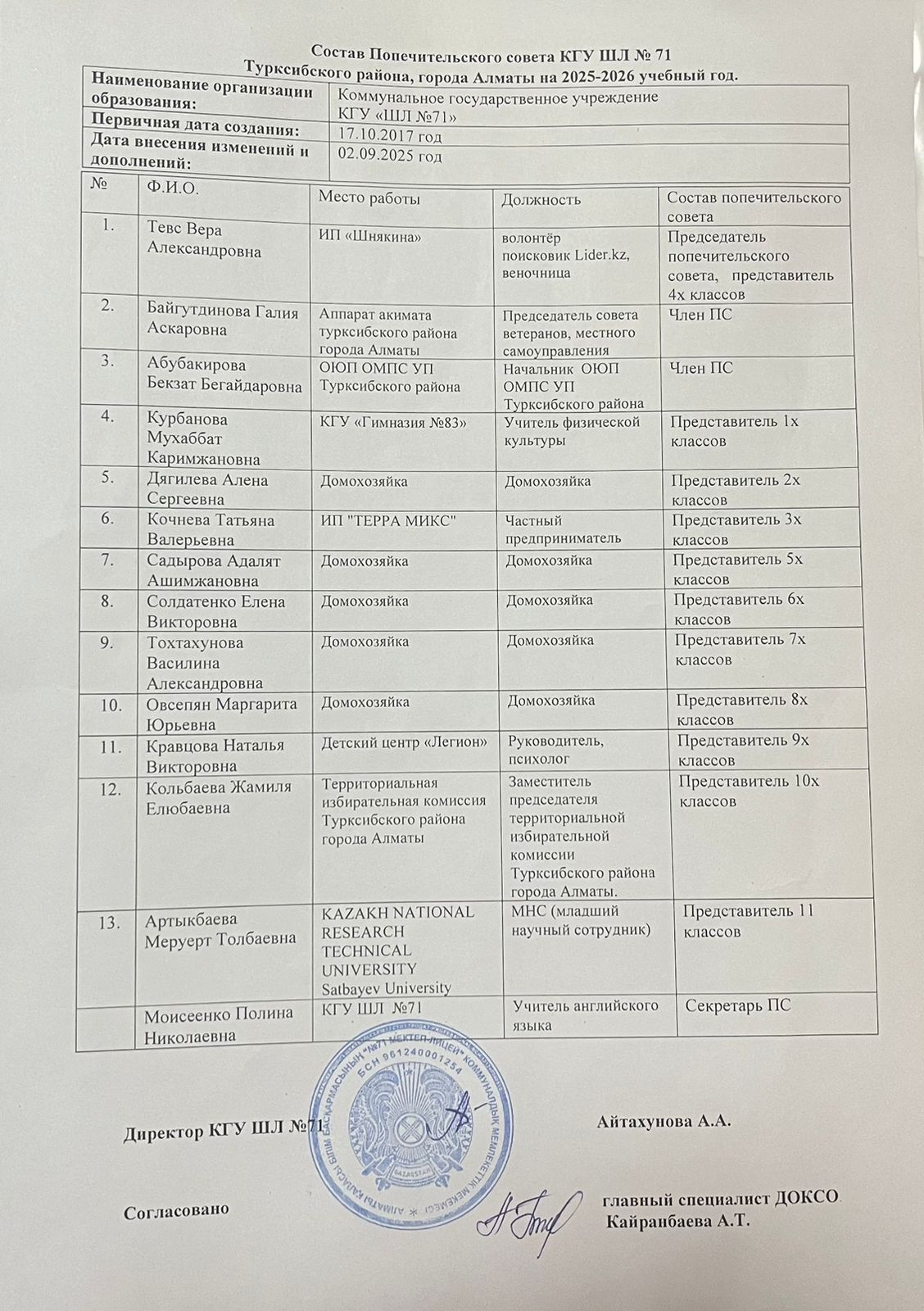 02 қыркүйек 2025 0 1 2 3 4 5 2025-2026 оқу жылына арналған Қамқоршылық кеңестің құрамы/Состав Попечительского совета на 2025-2026 учебный год