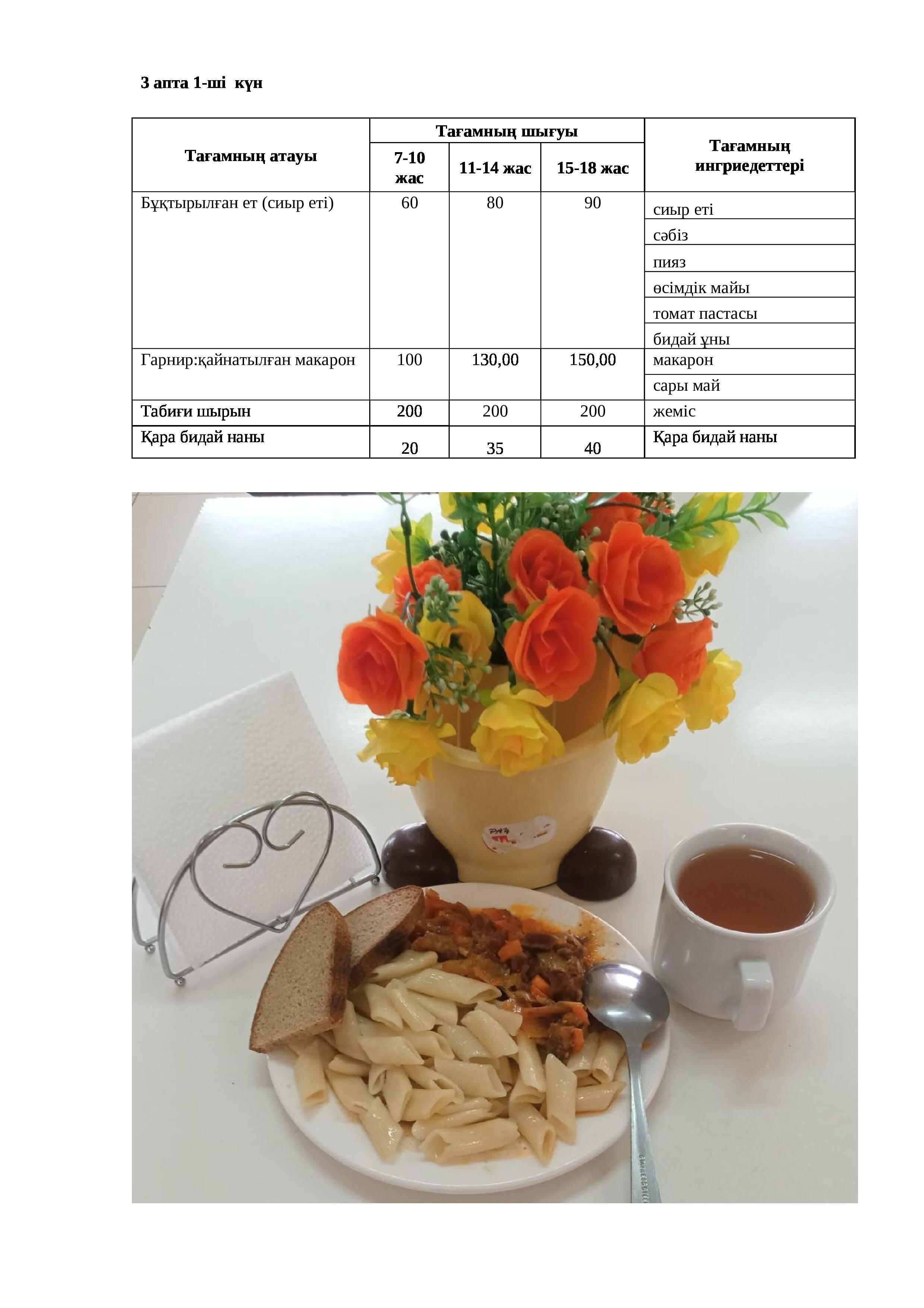 21.11.2022 жылына арналған ас мәзірі Меню на 21.11.2022