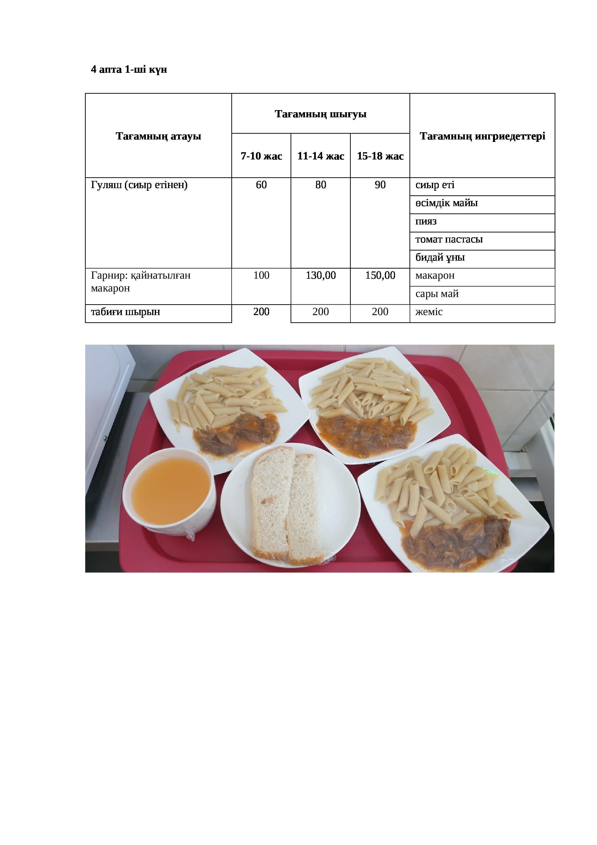 28.11.2022 жылына арналған ас мәзірі. Меню на 28.11.2022