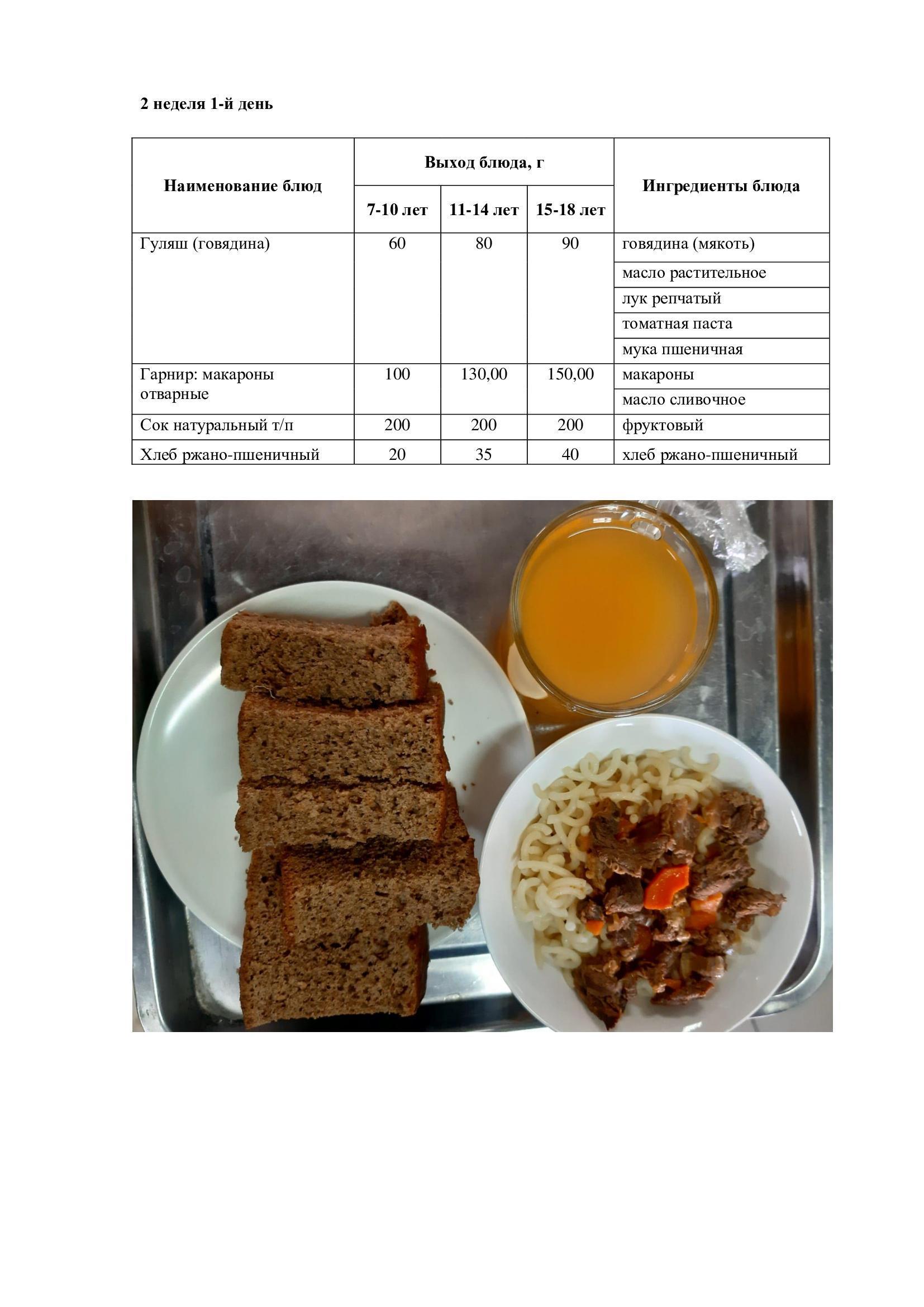 21.10.2022 жылына арналған ас мәзірі Меню на 21.10.2022