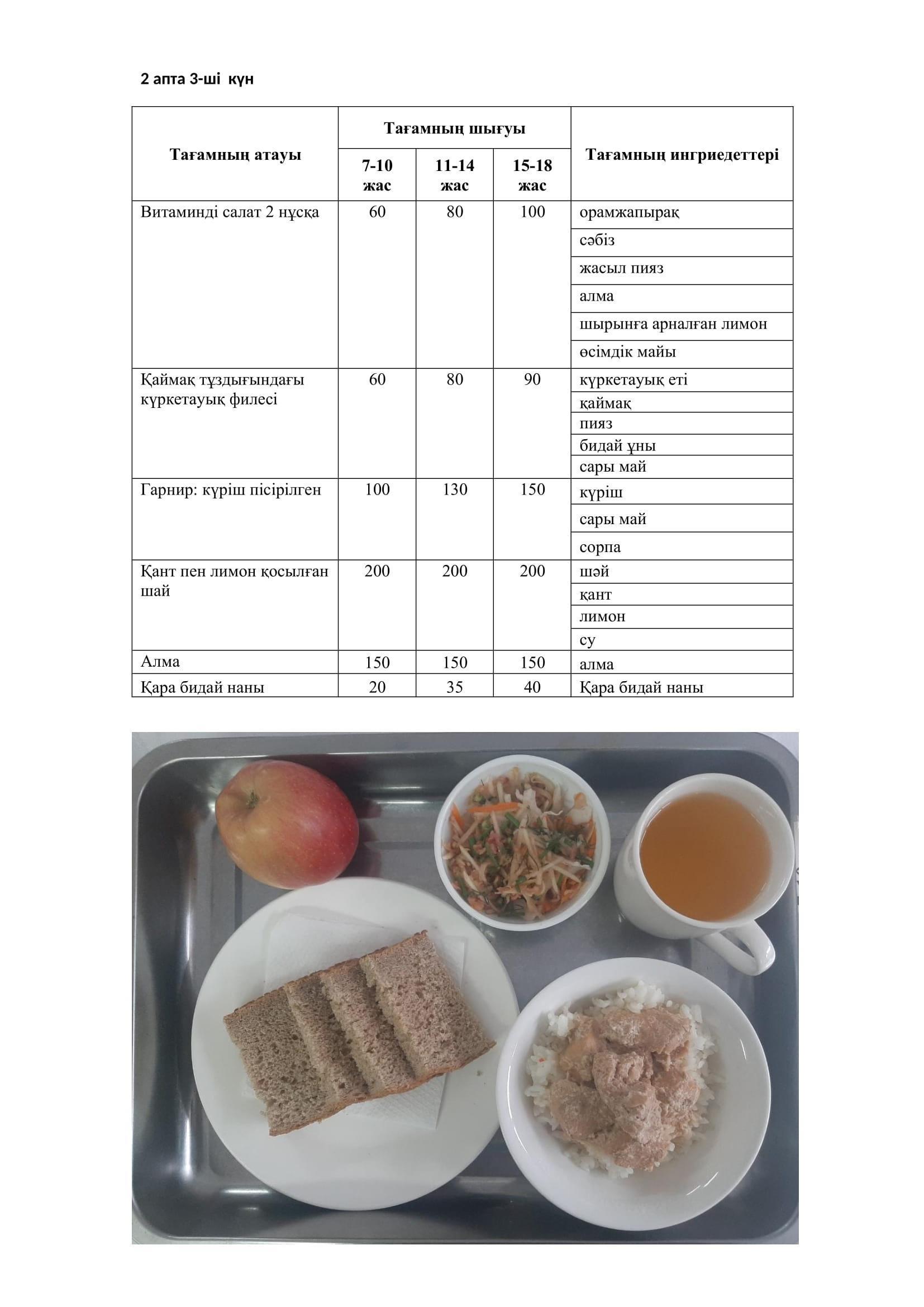 10.01.2023 жылына арналған ас мәзірі/Меню на 10.01.2023