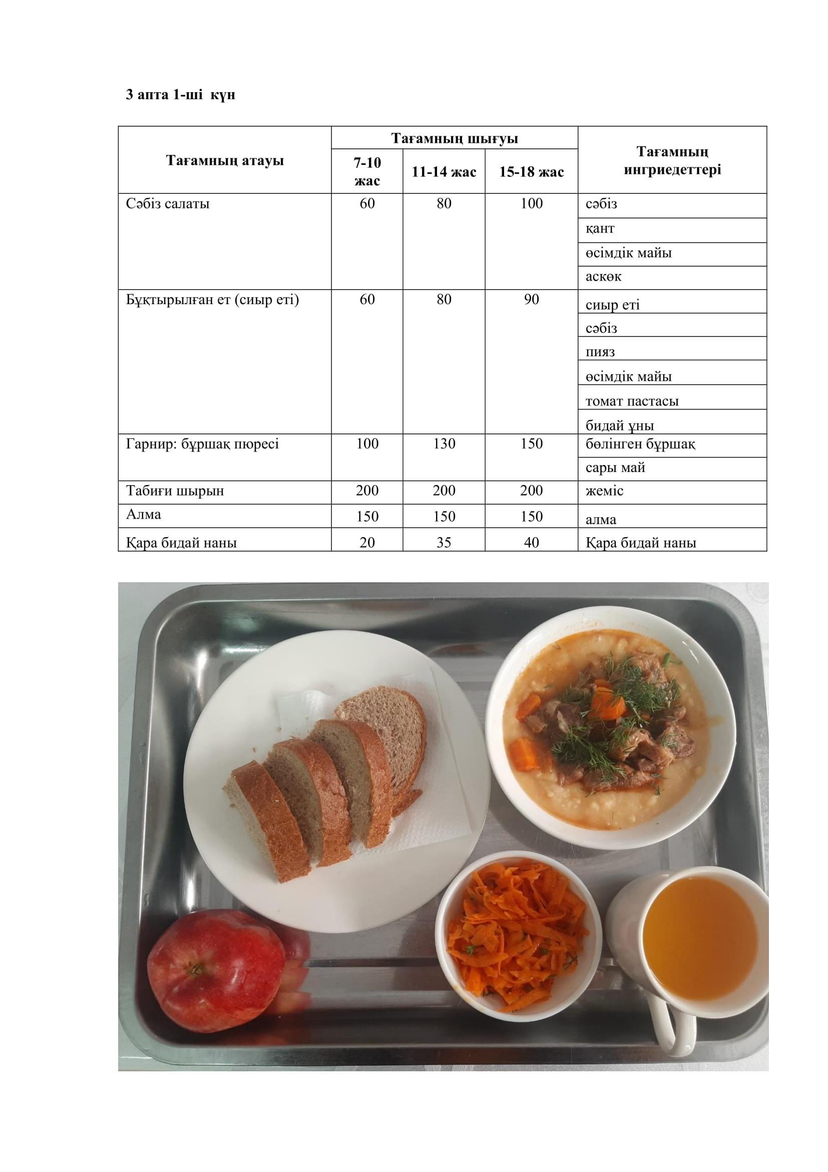 10.02.2023 жылына арналған ас мәзірі/Меню на 10.02.2023