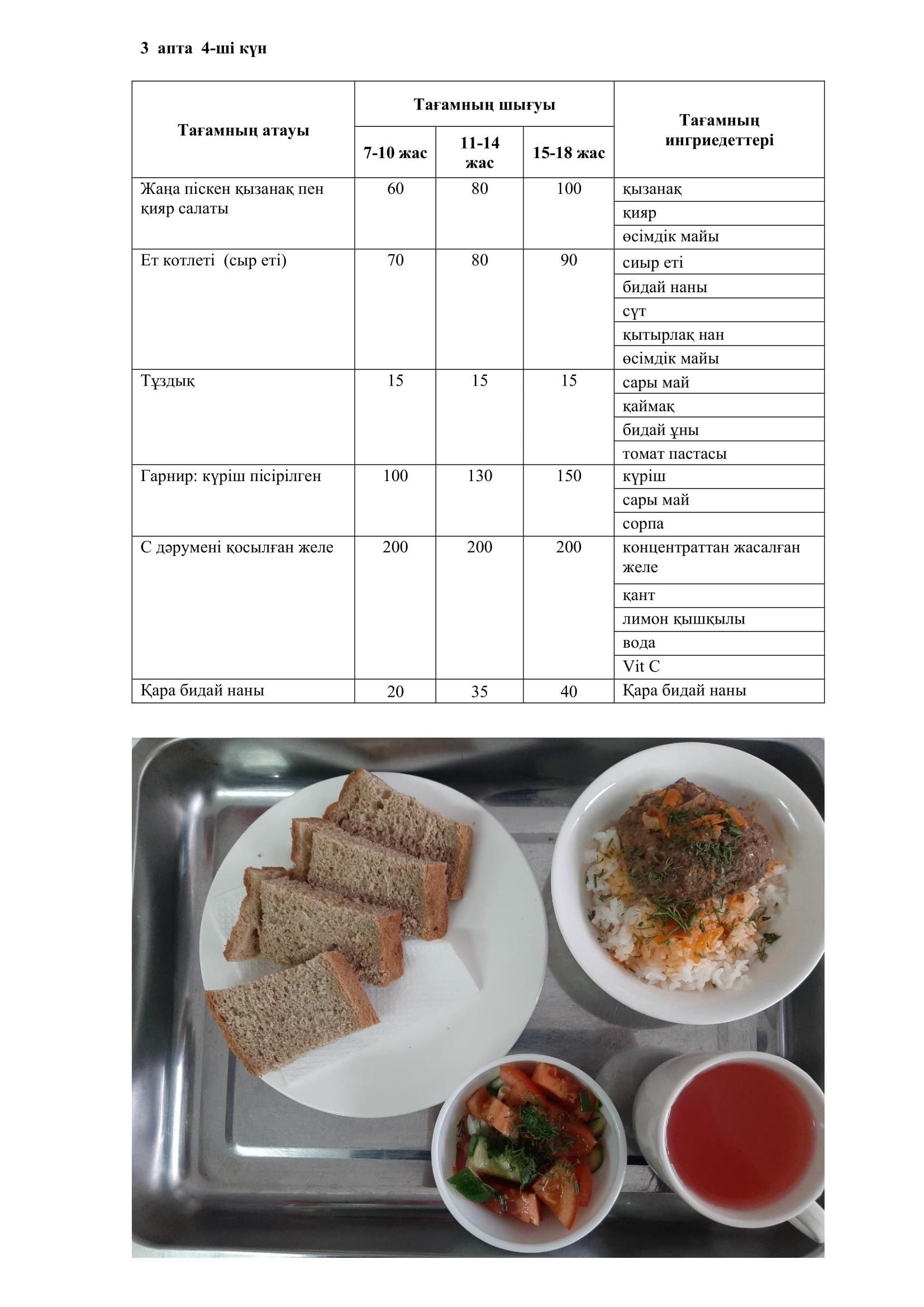 10.02.2023 жылына арналған ас мәзірі/Меню на 10.02.2023