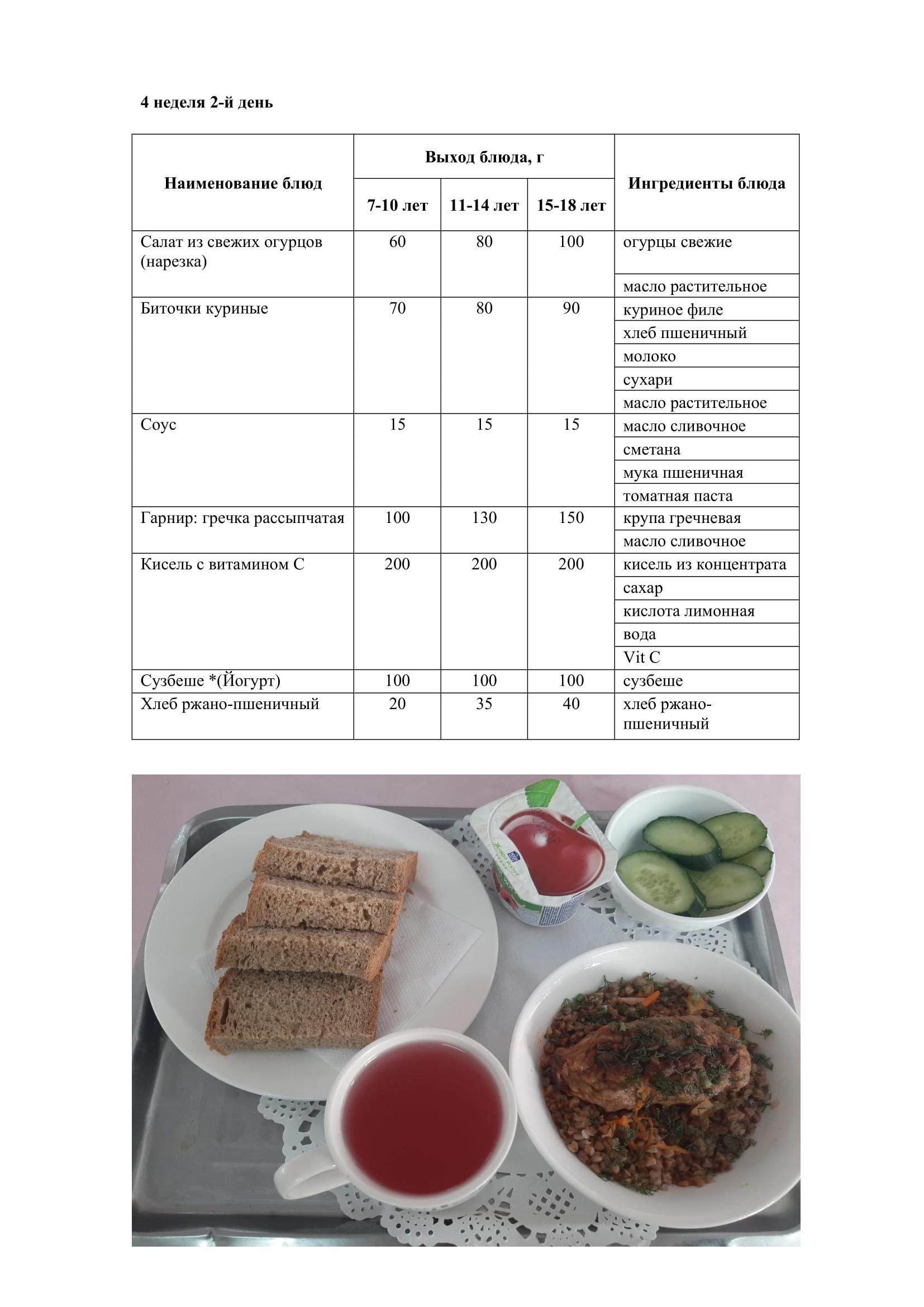 28.02.2023 жылына арналған ас мәзірі/Меню на 28.02.2023