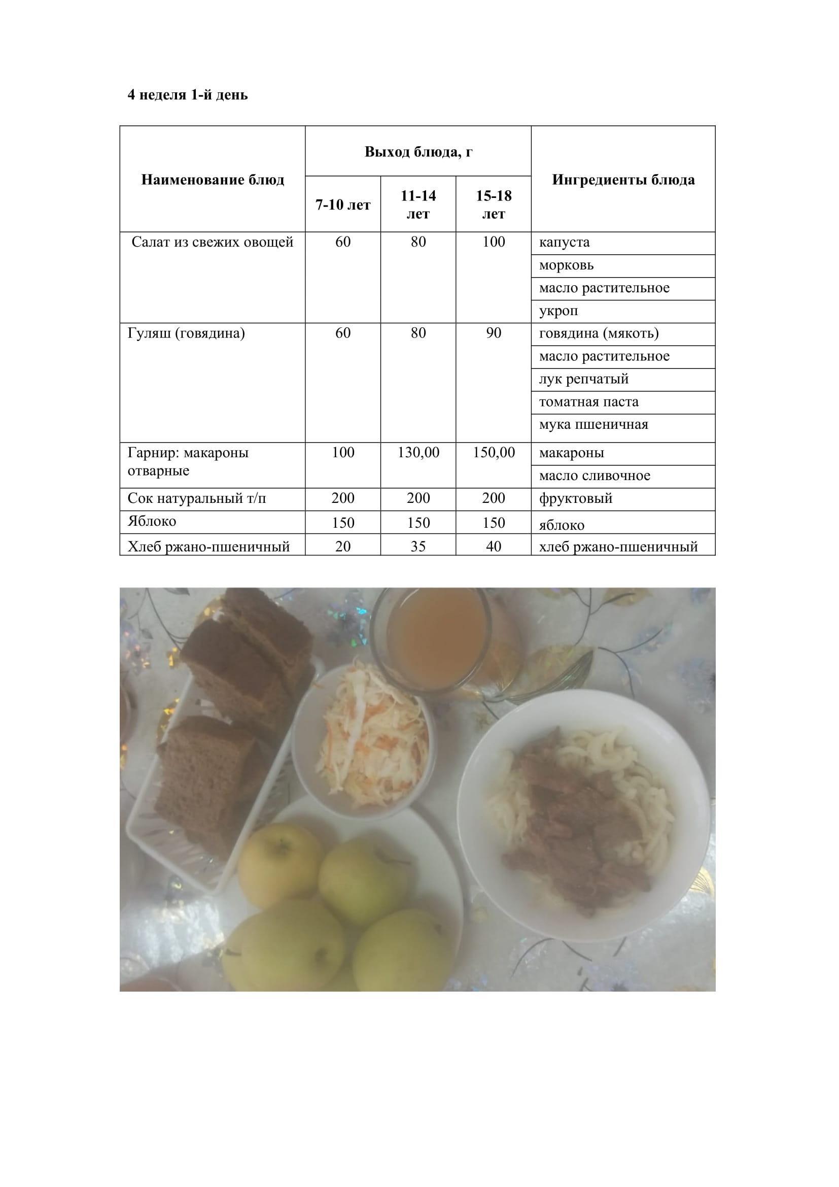 24.04.2023 жылына арналған ас мәзірі/Меню на 24.04.2023