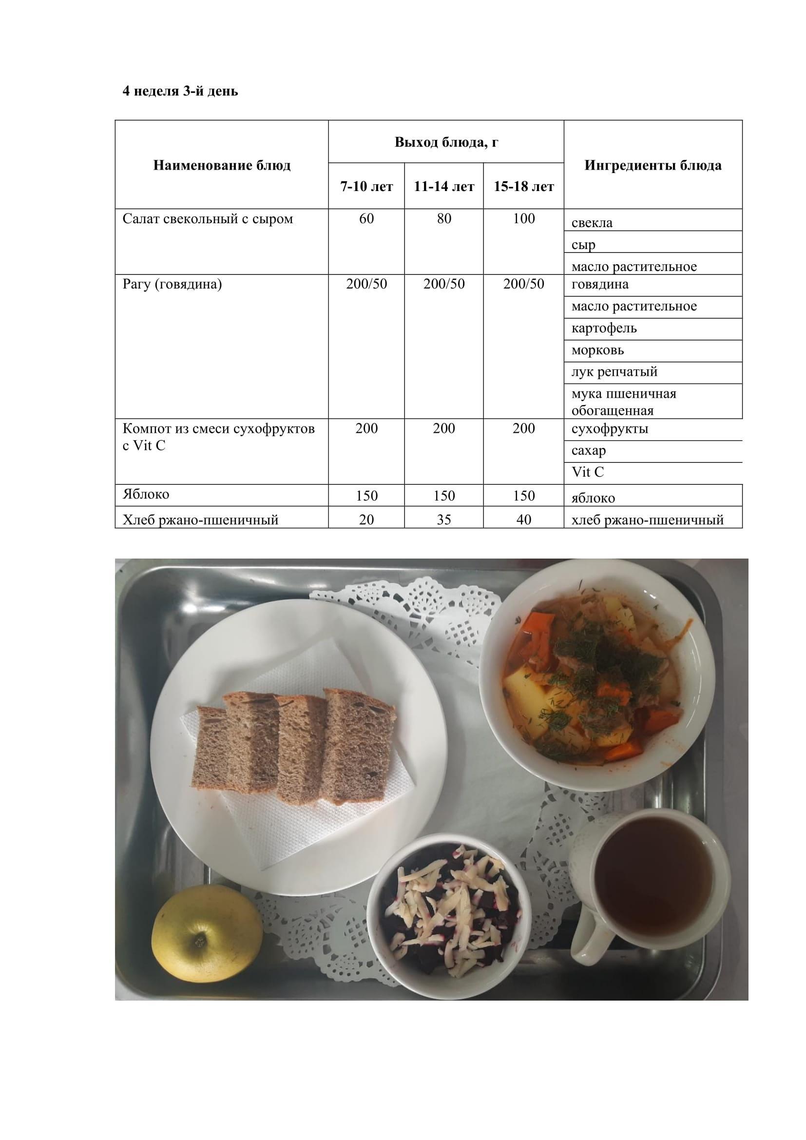 26.04.2023 жылына арналған ас мәзірі/Меню на 26.04.2023