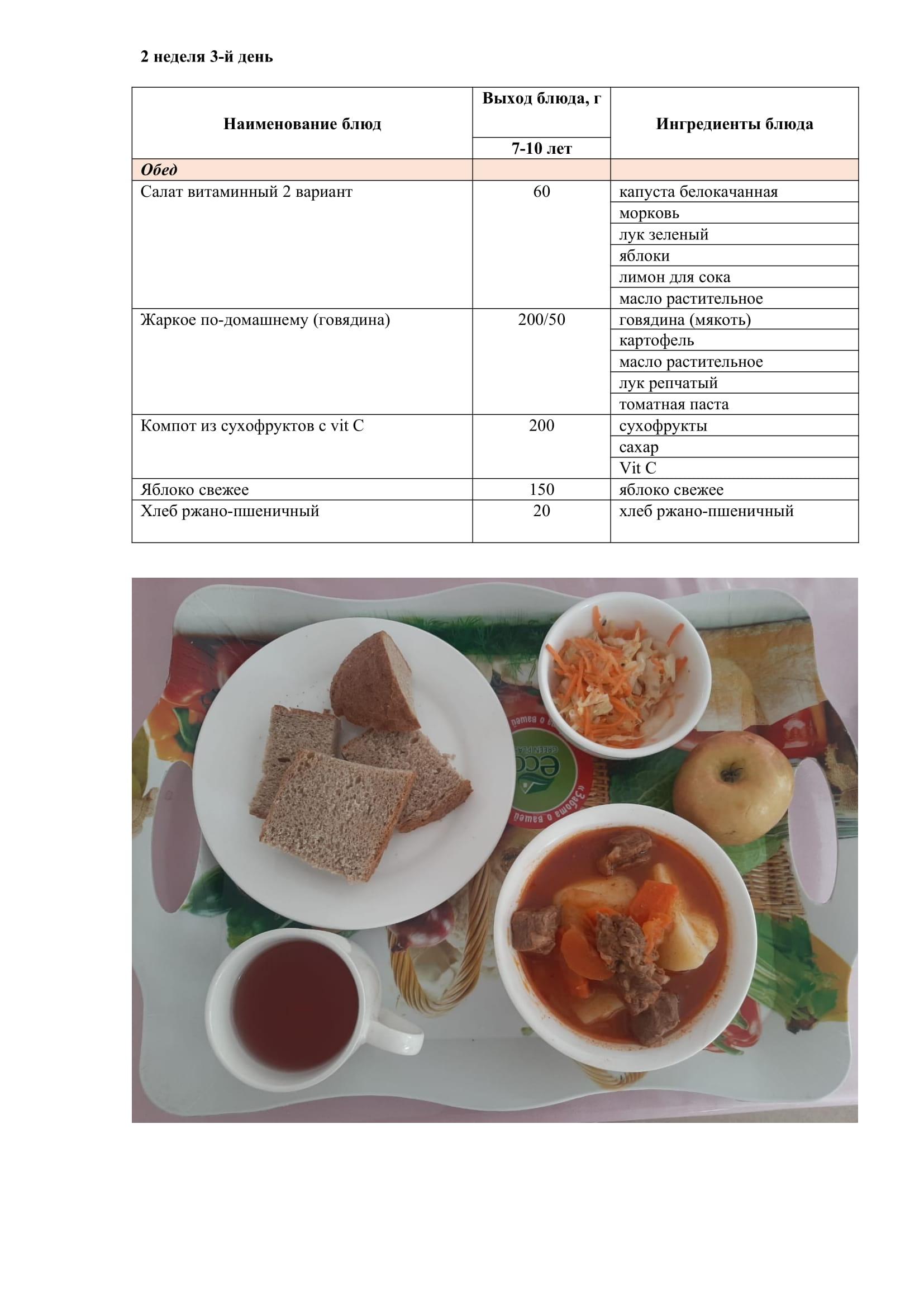 08.02.2023 жылына арналған ас мәзірі/Меню на 08.02.2023
