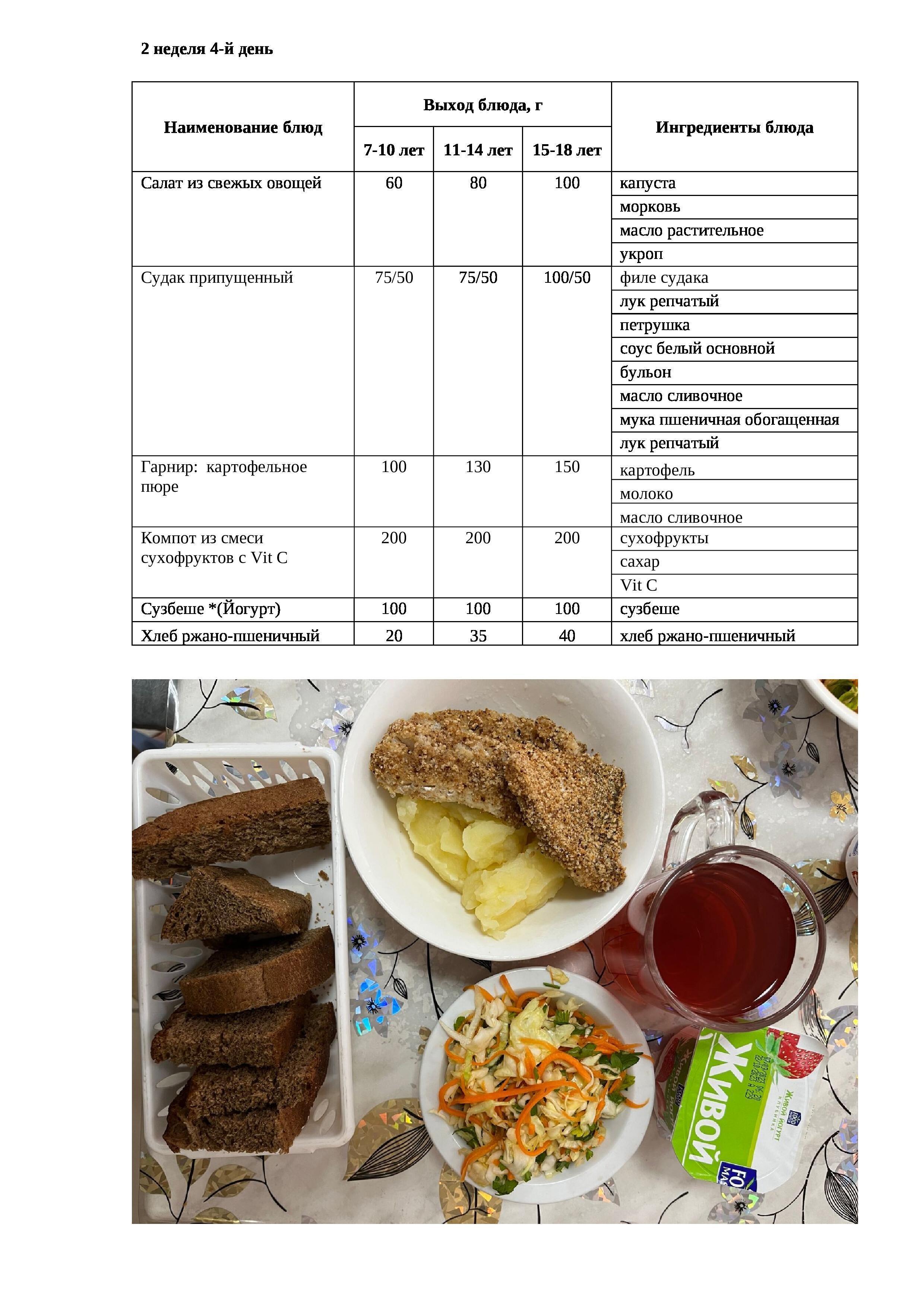 10.04.2023 жылына арналған ас мәзірі/Меню на 10.04.2023