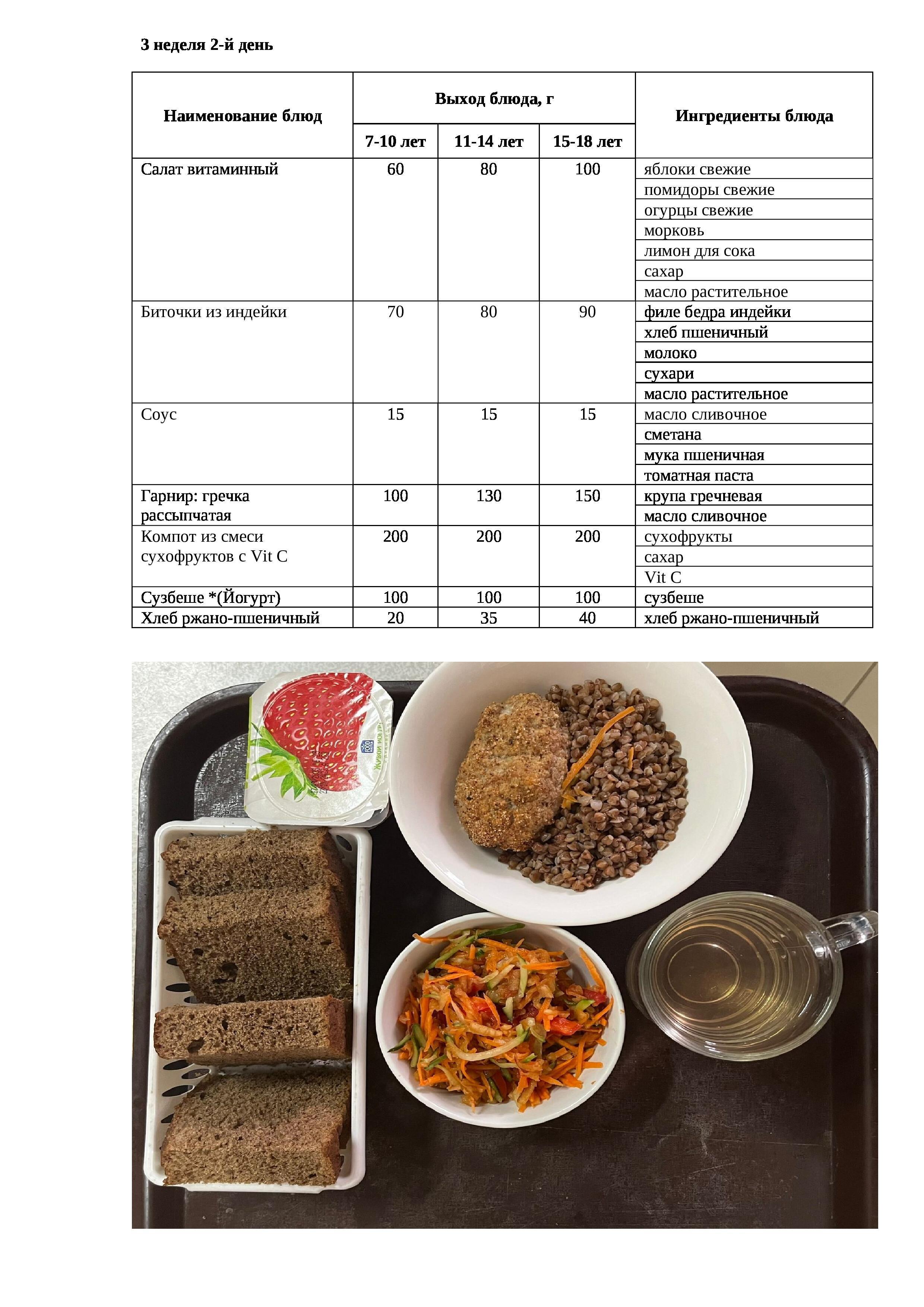 26.05.2023 жылына арналған ас мәзірі/Меню на 26.05.2023