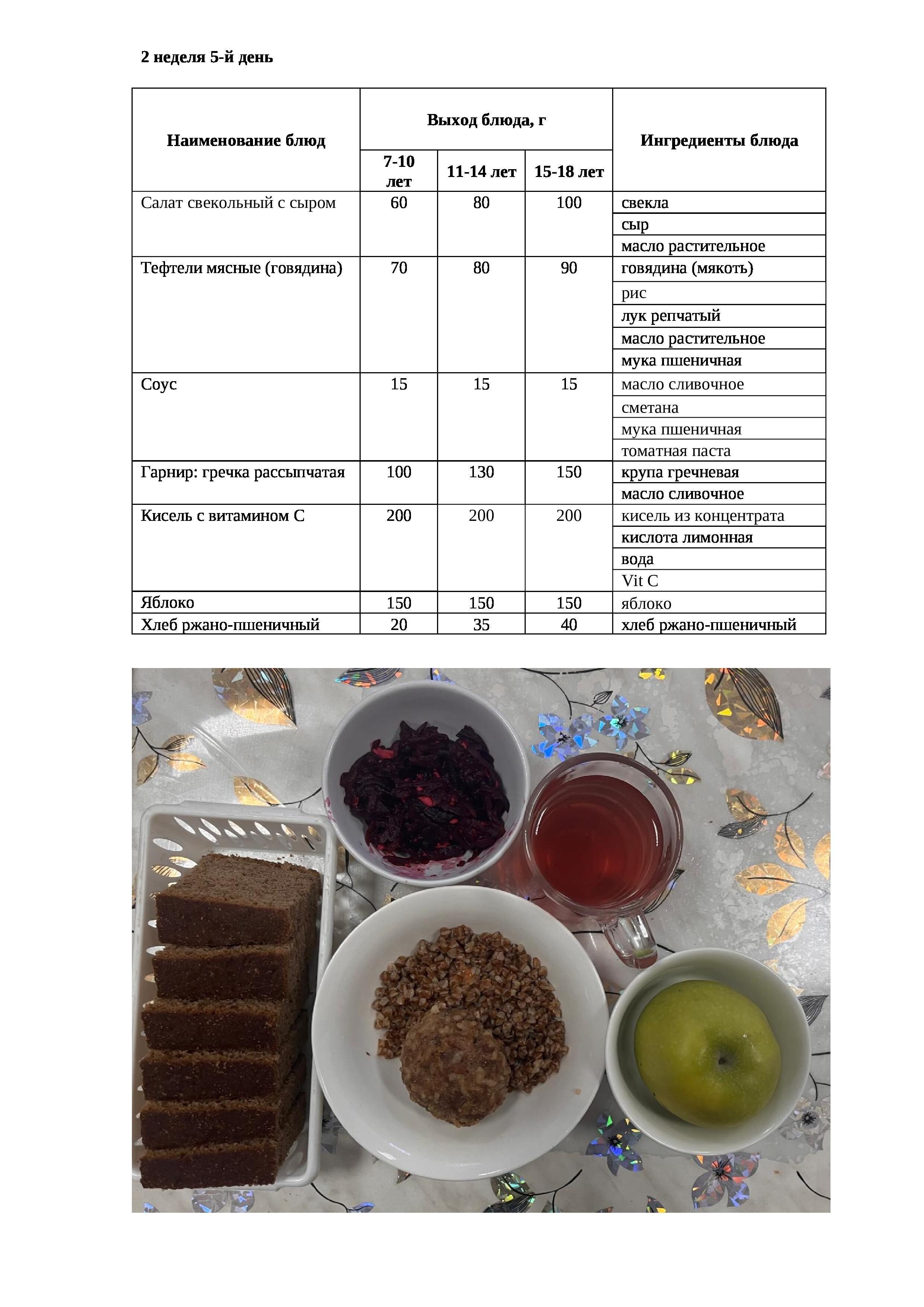 10.01.2024 жылына арналған ас мәзірі/Меню на 10.01.2024