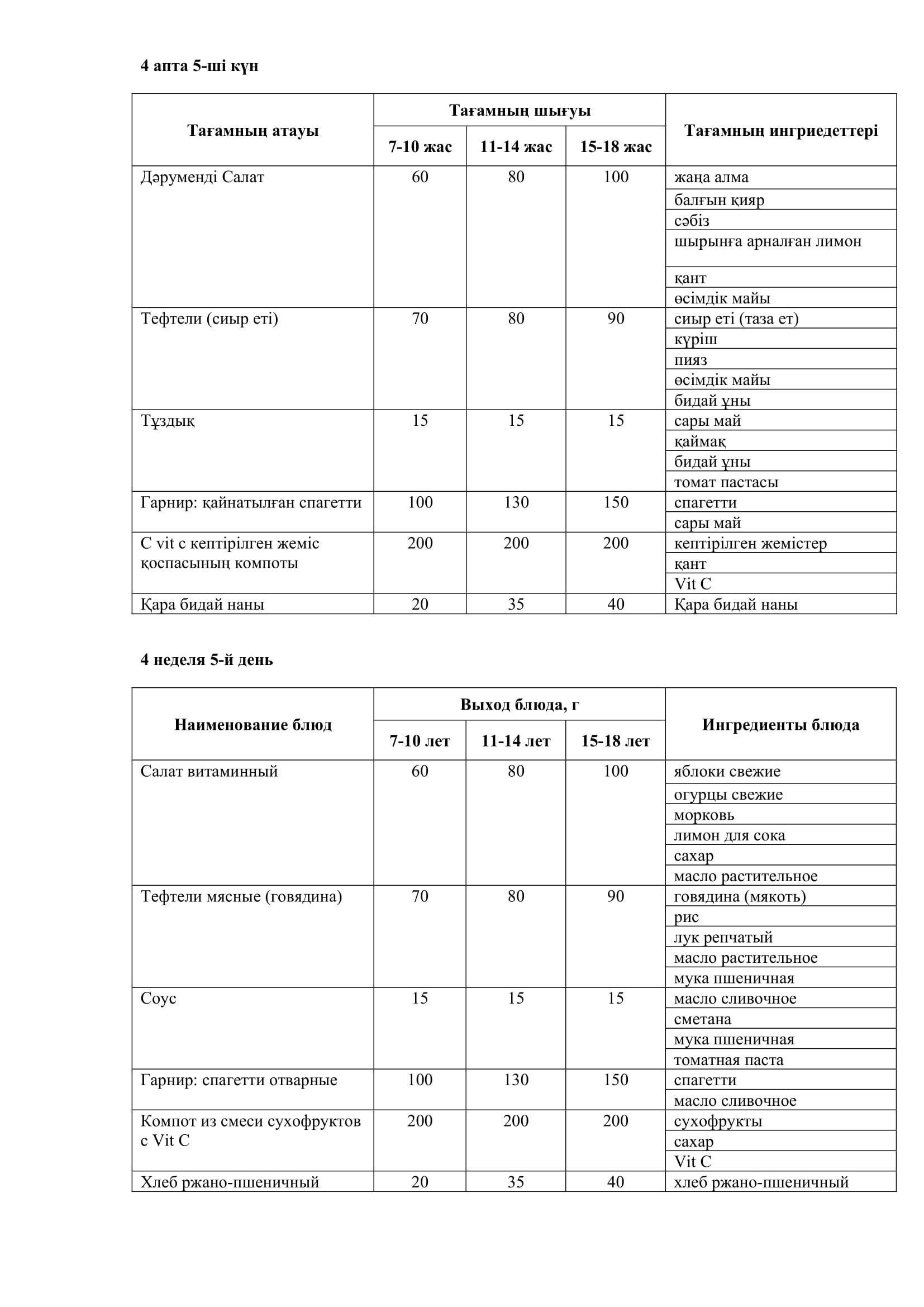16.01.2025 жылына арналған ас мәзірі/Меню на 16.01.2025