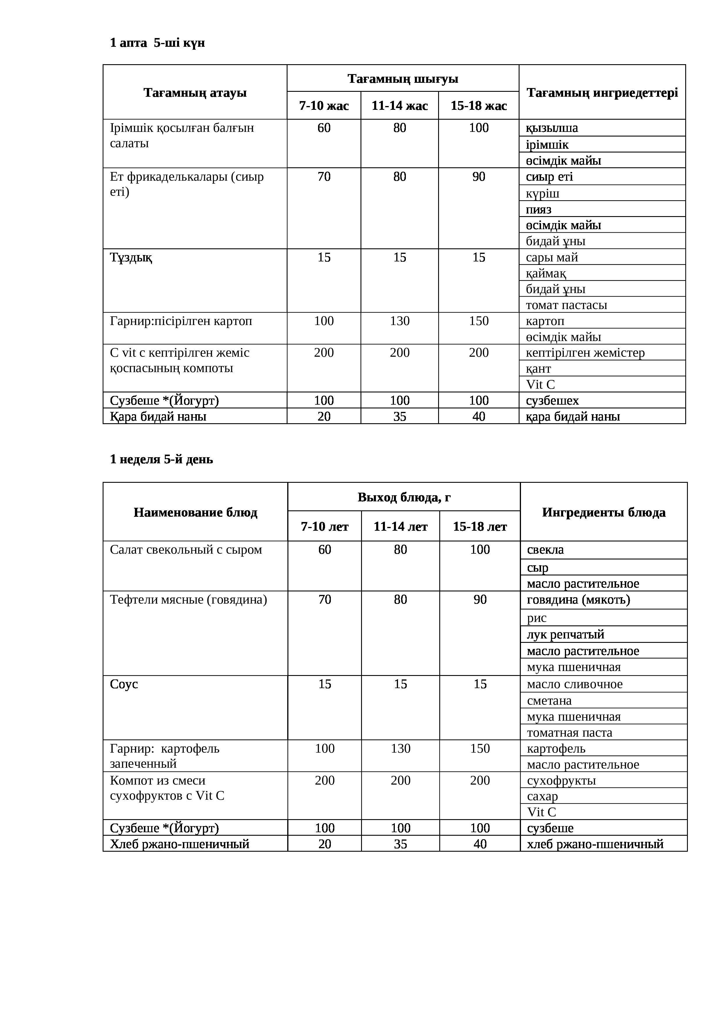 15.01.2025 жылына арналған ас мәзірі/Меню на 15.01.2025