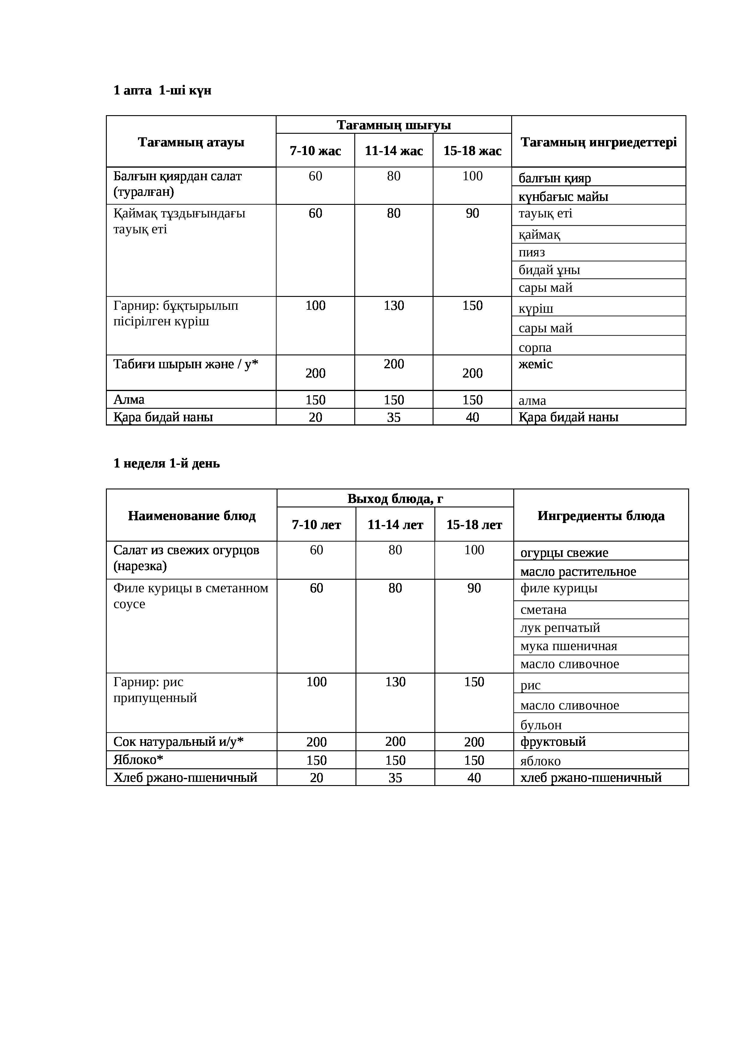 » 03.03.2025 жылына арналған ас мәзірі/Меню на 03.03.2025
