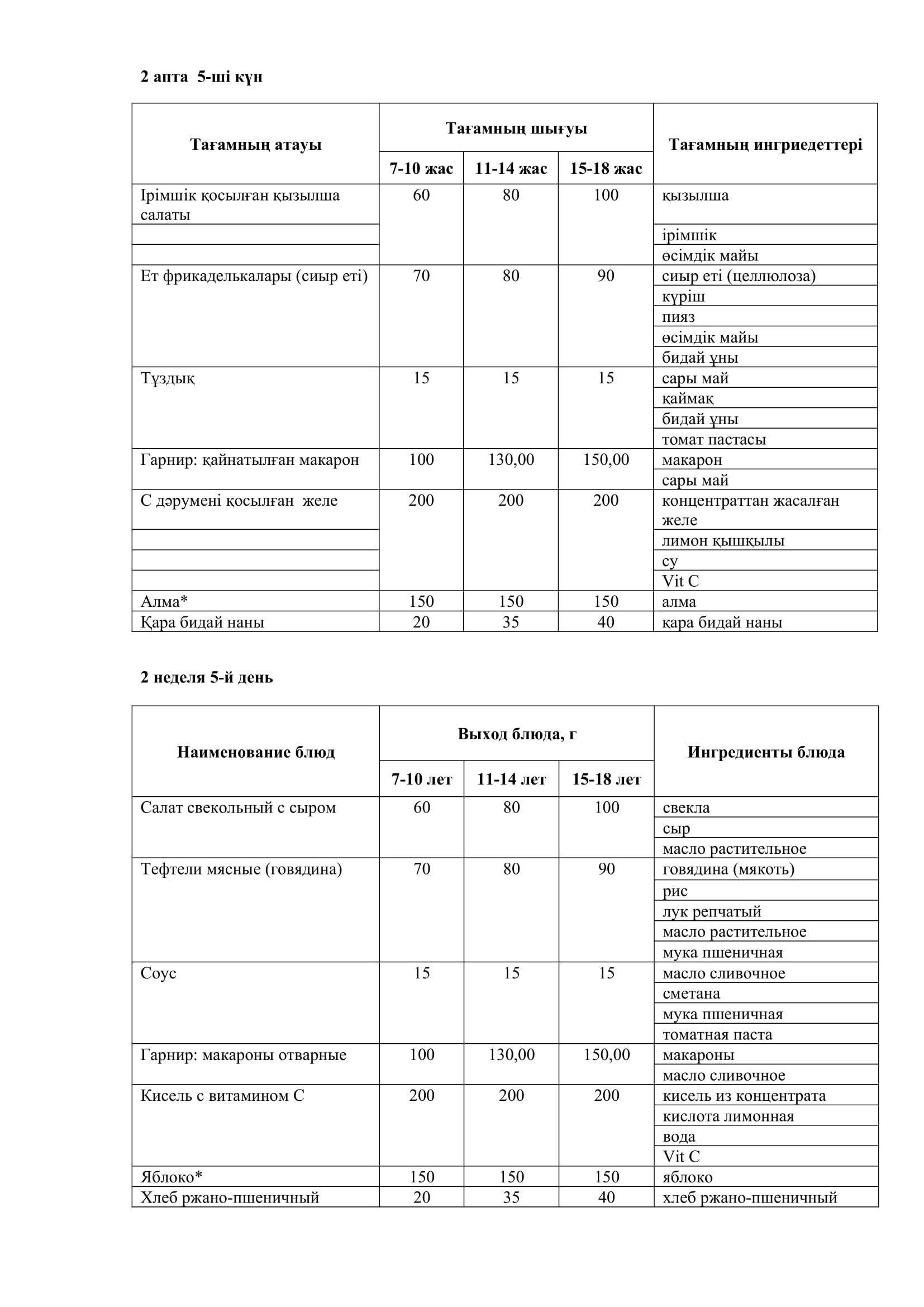 26.02.2025 жылына арналған ас мәзірі/Меню на 26.02.2025