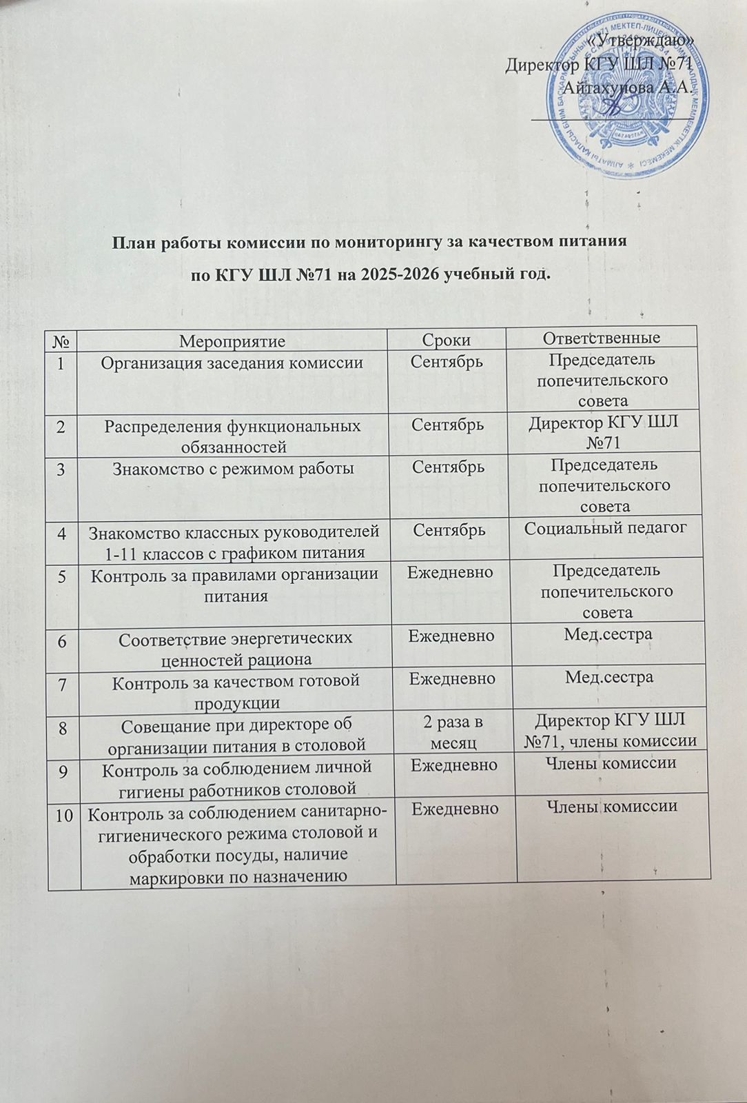 29 тамыз 2025 0 1 2 3 4 5 «Тамақтану сапасы бойынша мектеп сараптамалық комиссиясының жоспары”/План школьной экспертной комиссии по мониторингу за качеством питания